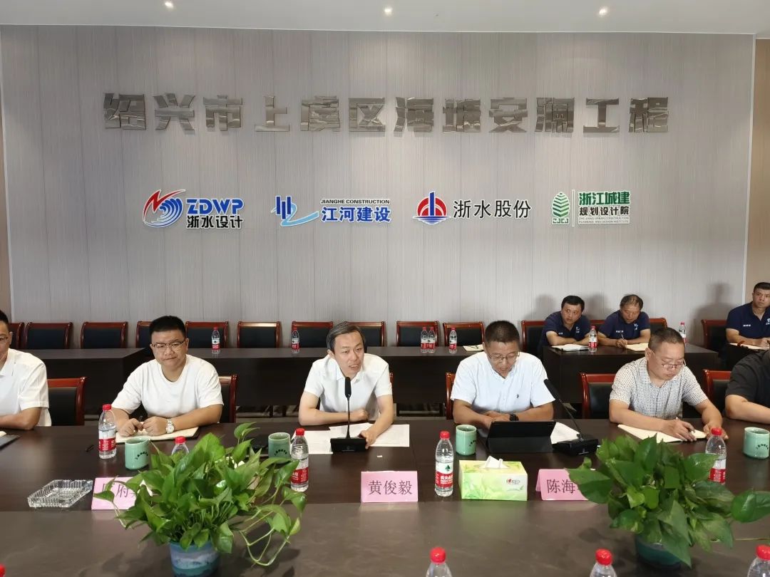 9月20日上午,上虞區海塘安瀾工程項目部召開上虞海塘安瀾工程“保安提質促投資”項目推進會,上虞區副區長黃俊毅、上虞水投集團董事長陳海華等出席,公司董事長袁偉忠代表施工單位發言。