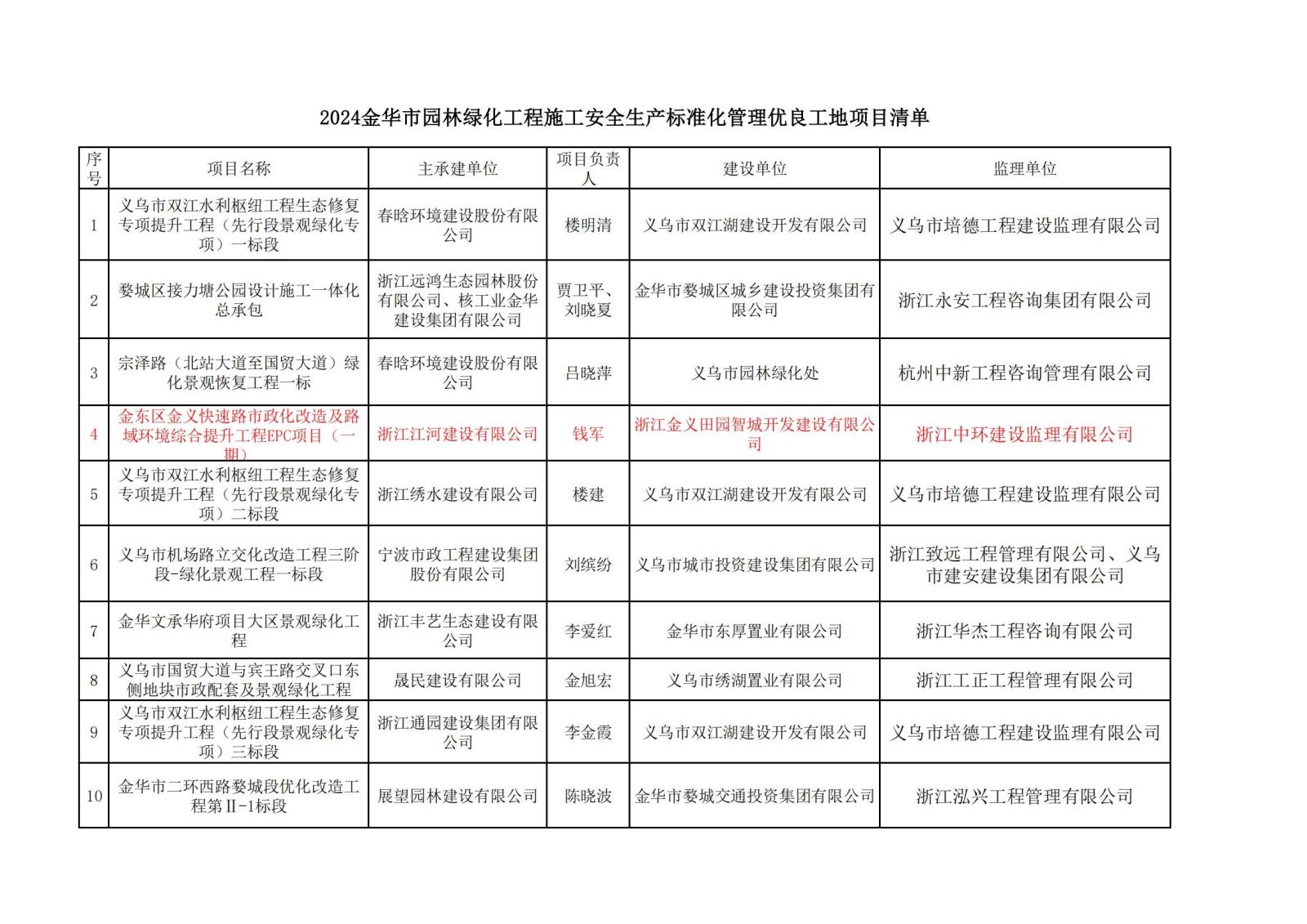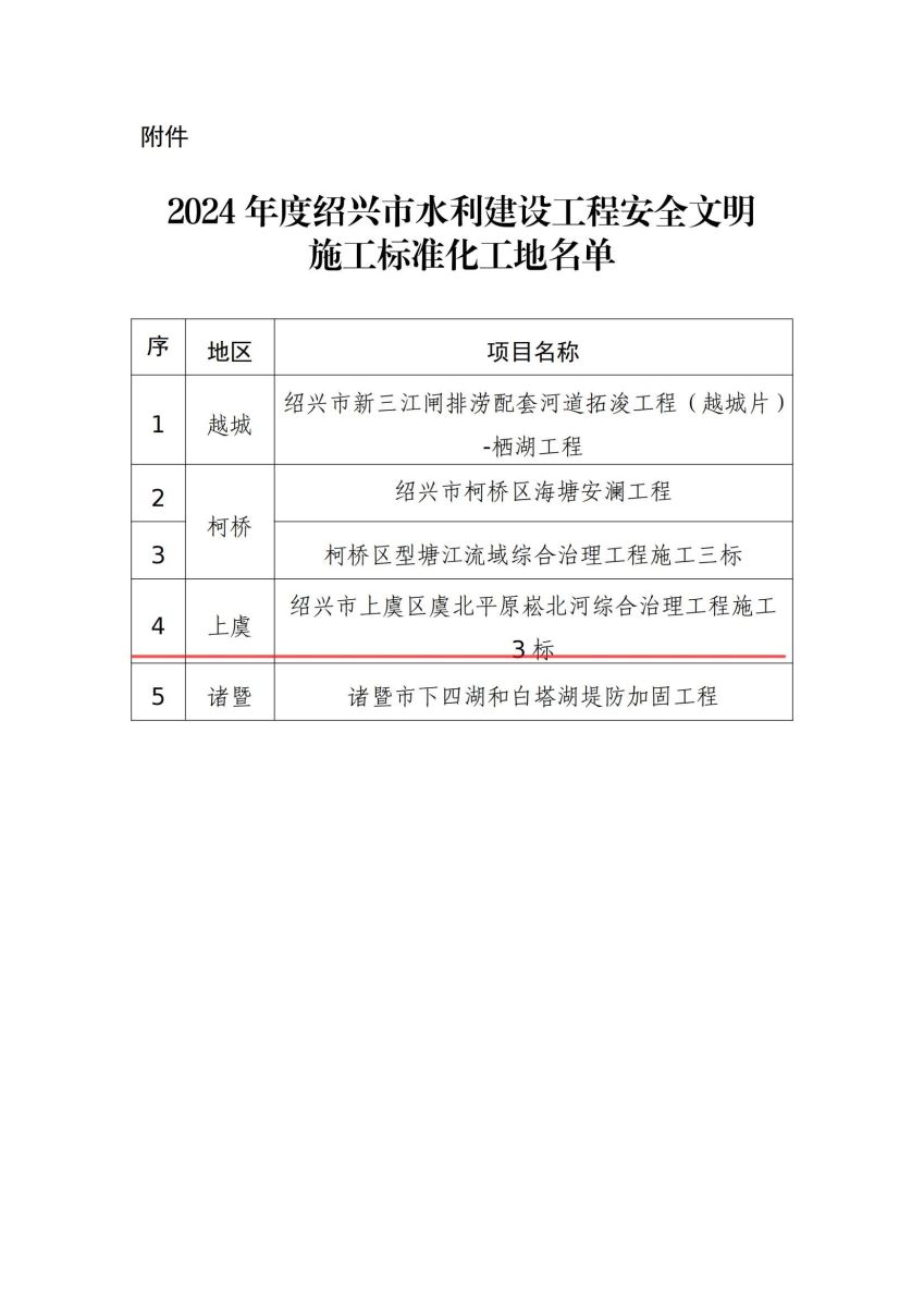 近日,公司所承建的“紹興市上虞區虞北平原崧北河綜合治理工程施工3標”及“金東區金義快速路市政化改造及路域環境綜合提升工程EPC項目”,項目部通過在施工中各項安全文明標準化措施的管控下,分別榮獲“2024年度紹興市水利建設工程安全文明施工標準化工地”和“2024年度金華市園林綠化工程施工安全生產標準化管理優良工地”稱號。