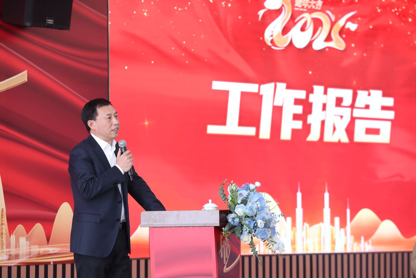 靈蛇獻瑞,福滿乾坤。2月10日下午,公司召開2025年新春工作會議,回顧總結2024年各項工作,部署落實新一年工作目標任務,并隆重表彰了2024年度涌現出來的各類先進團隊和個人,獎勵2024年度工程創優項目。公司總部全體員工、分子公司負責人、項目部代表等200余人參加會議,公司董事長袁偉忠作重要講話,總裁陳宋江作工作報告。